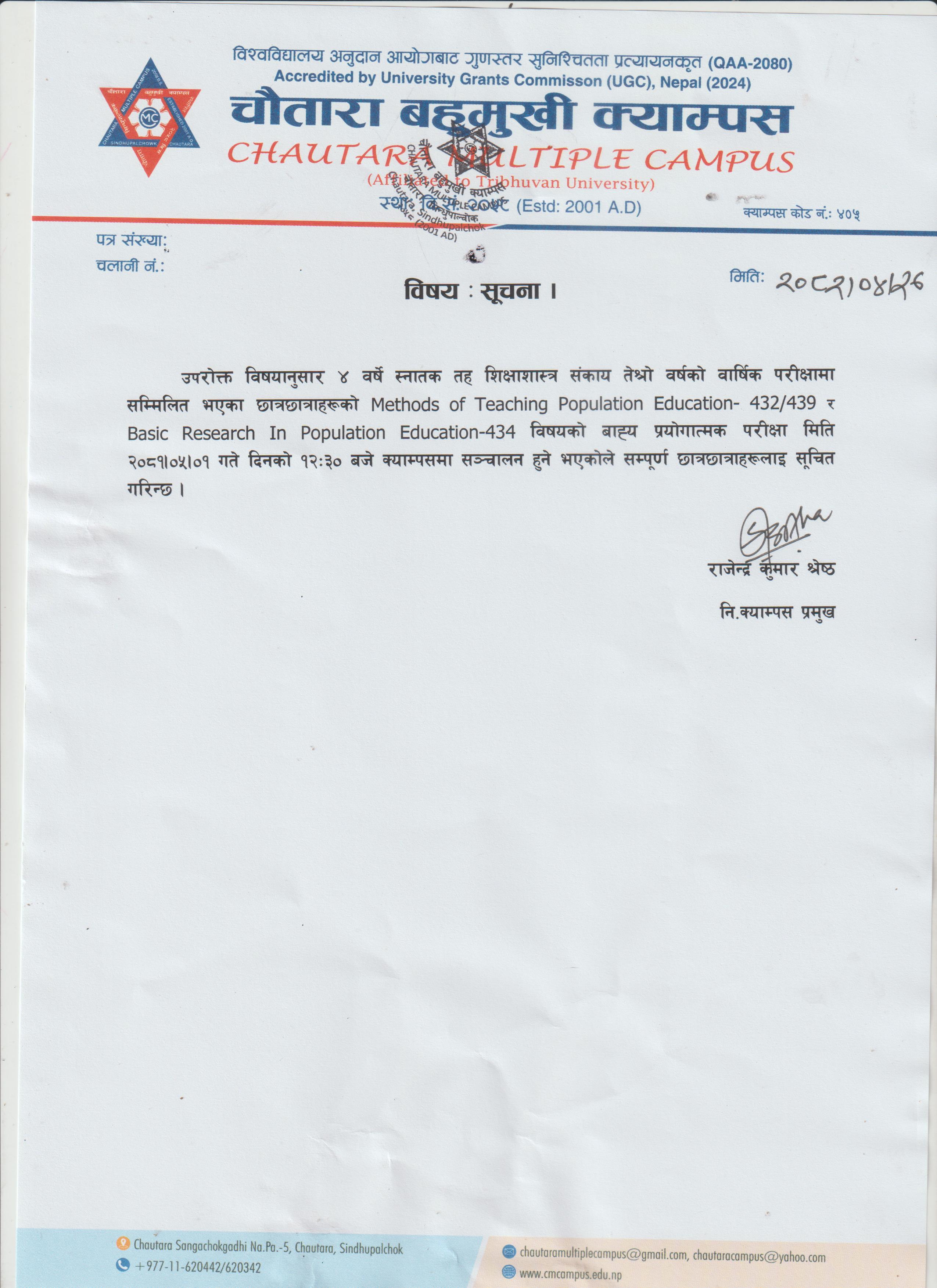 ४ वर्षे स्नातक तह शिक्षाशास्त्र संकाय तेश्रो वर्षको प्रयोगात्मक परीक्षा स |