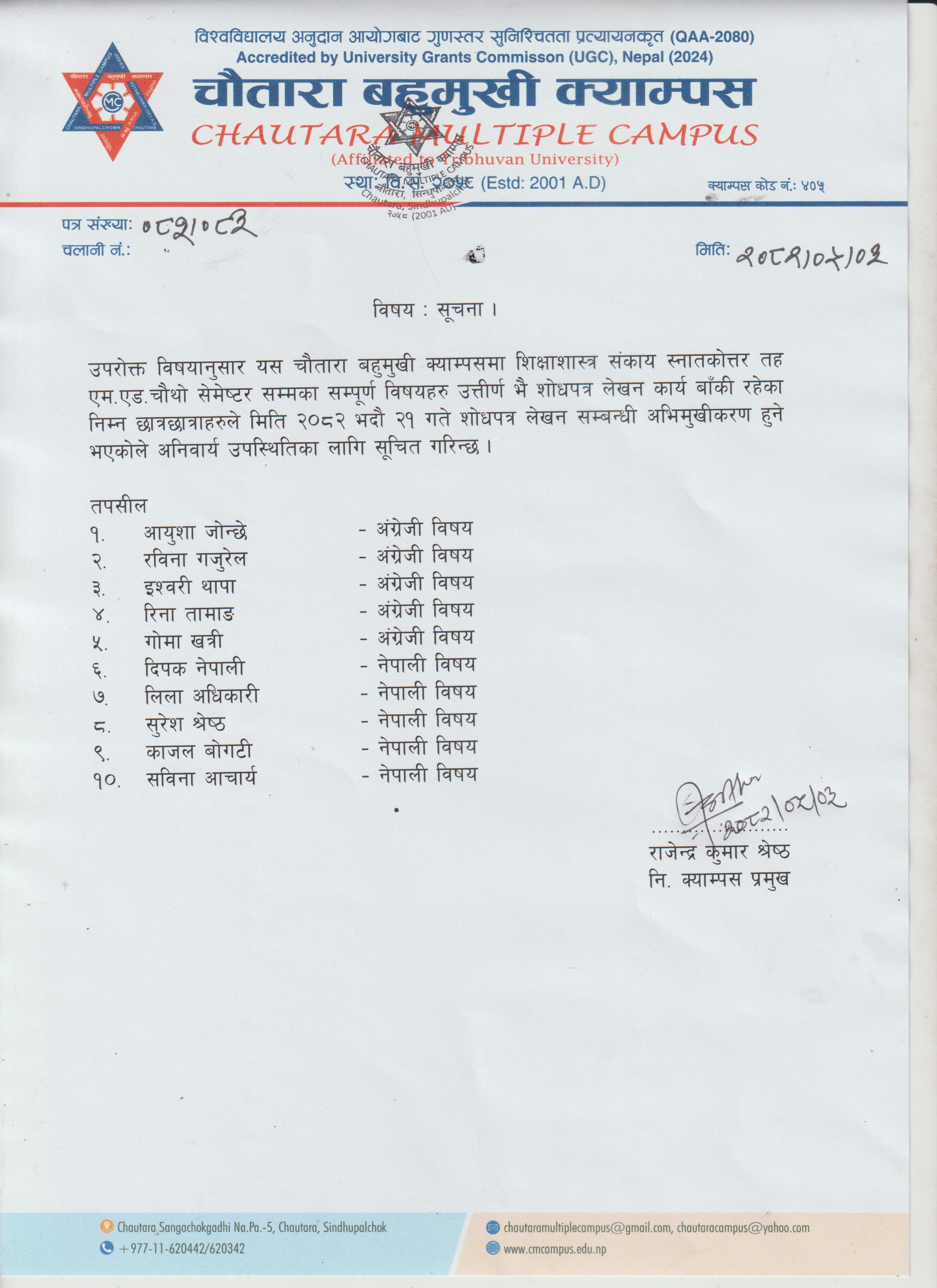 शोधपत्र लेखन कार्यको अभिमुखीकरण सम्बन्धी सूचना । |