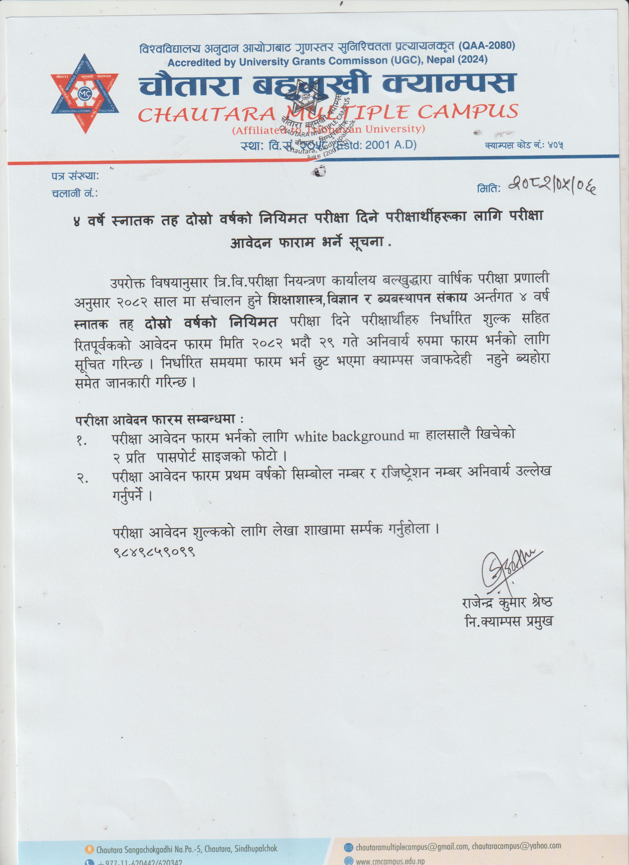 ४ वर्षे स्नातक तह दोश्रो वर्षको नियमित परीक्षा दिने परीक्षार्थीहरुका लागि |
