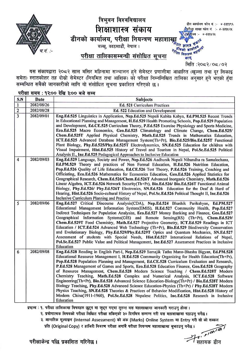| परीक्षा तालिकासम्बन्धी संशोधित सूचना |