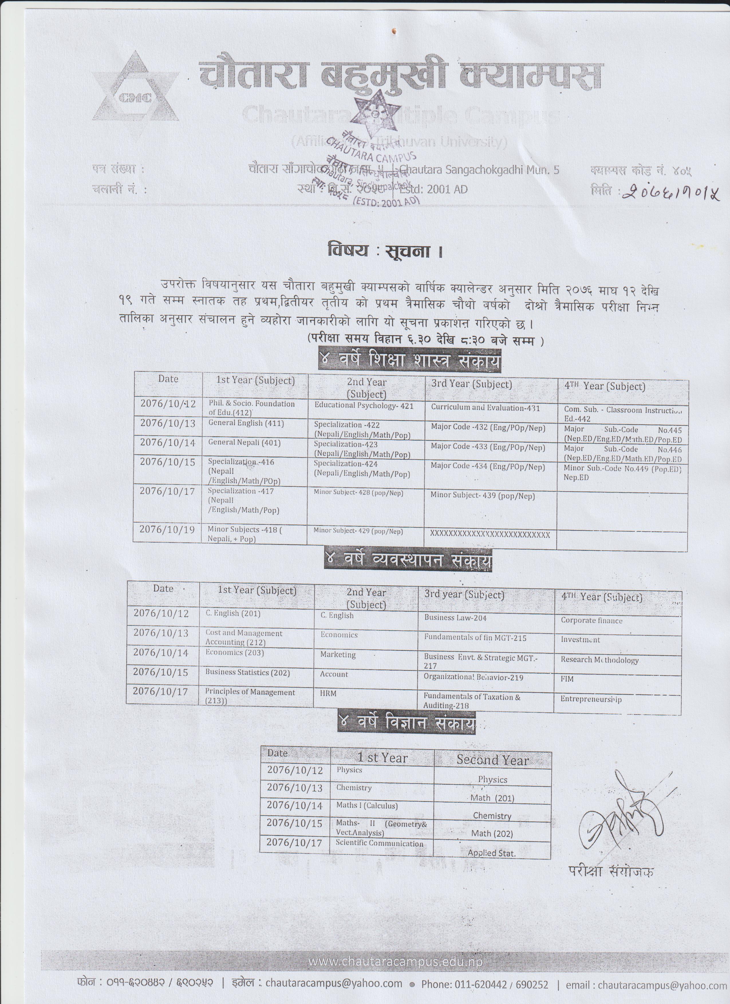 | 4 YRS B.ED/ BBS/BSC Internal Exam Routine | माघ ७, २०७६ मंगलबार | Download / View |