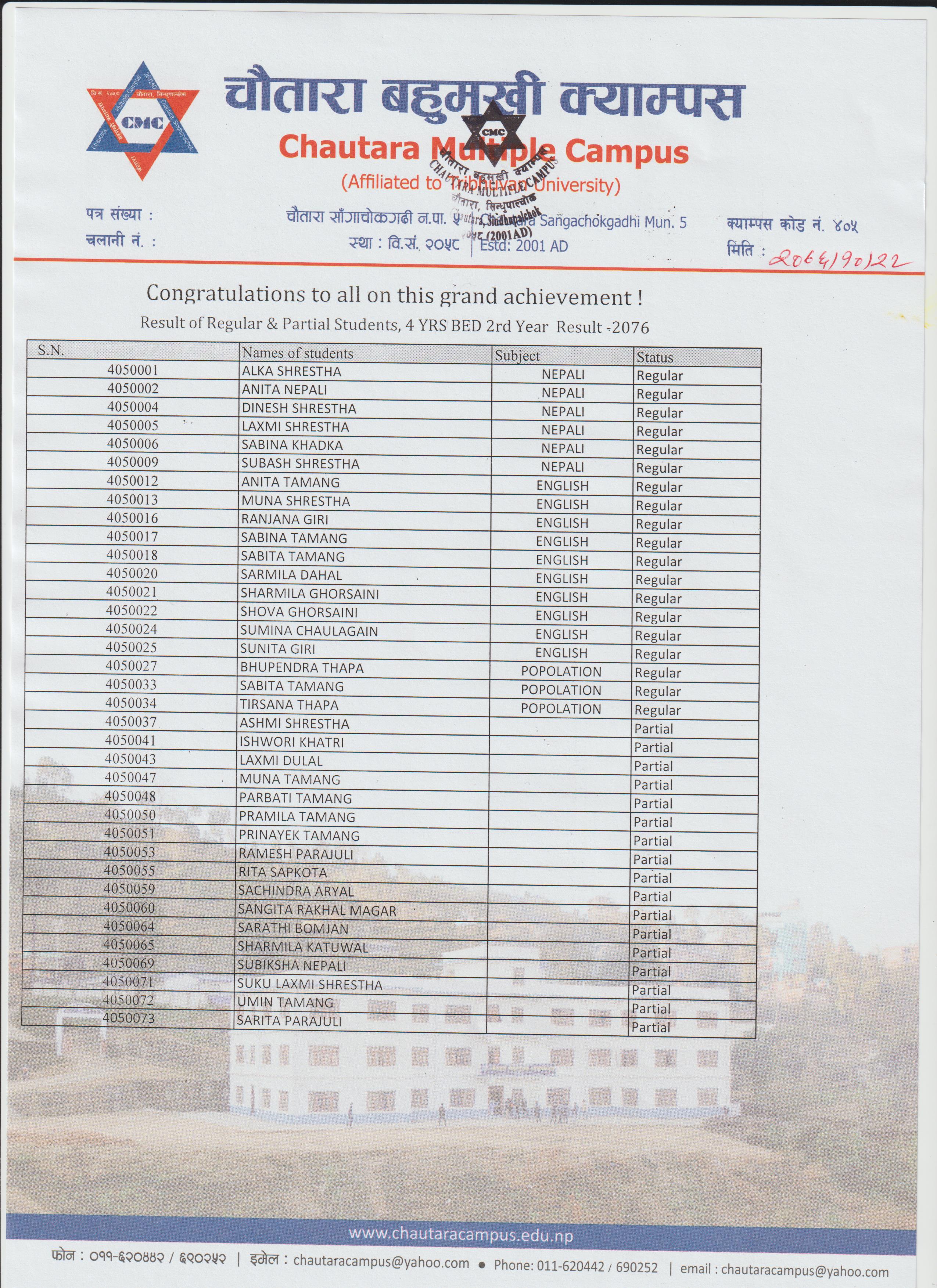 | M.ED. Entrance Result-2076 | माघ २३, २०७६ बिहीबार | Download / View |