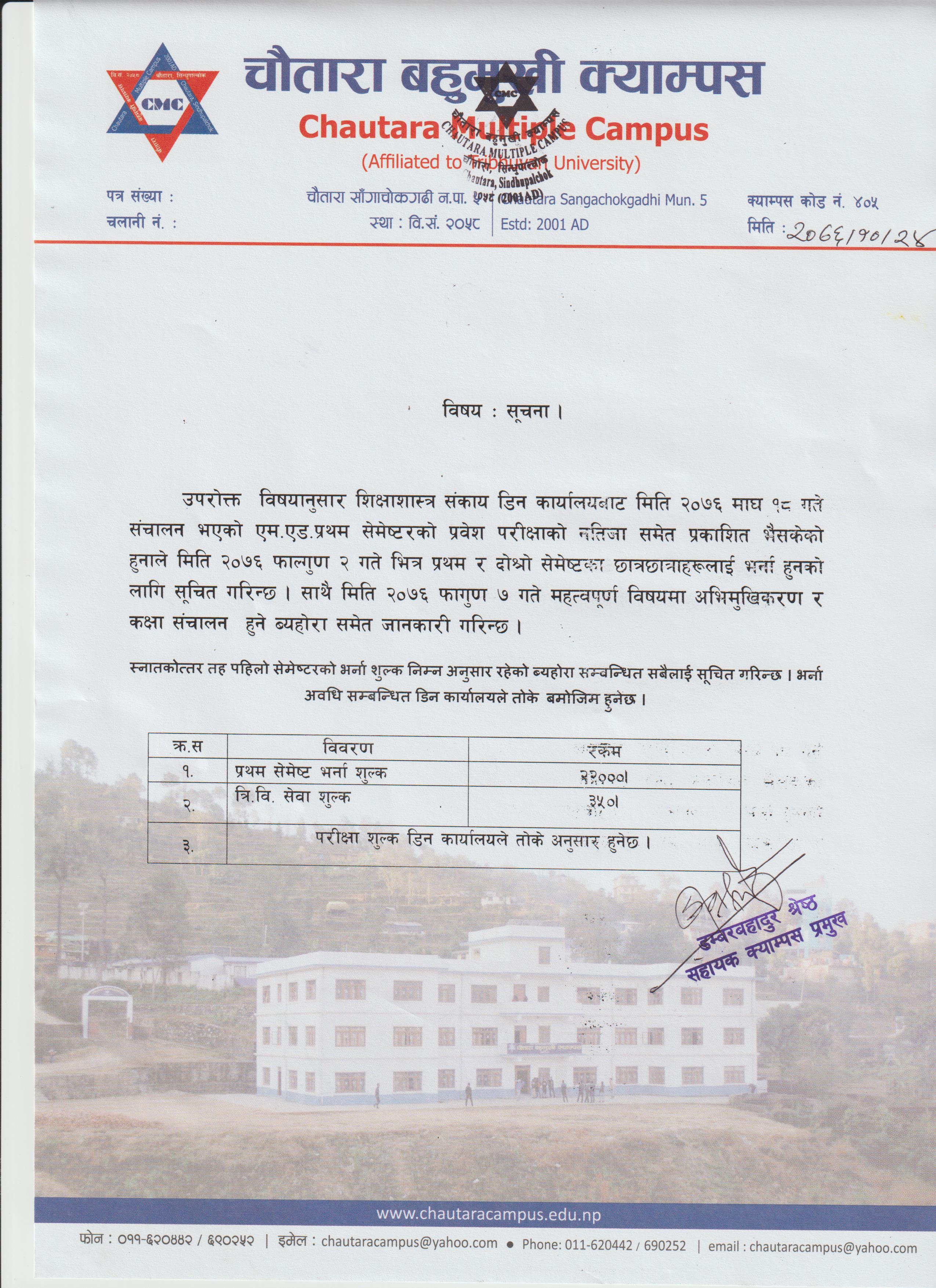 | M.ED.First Semester Admission Notice -2076/077 | पुष ६, २०७६ आइतबार | Download / View |