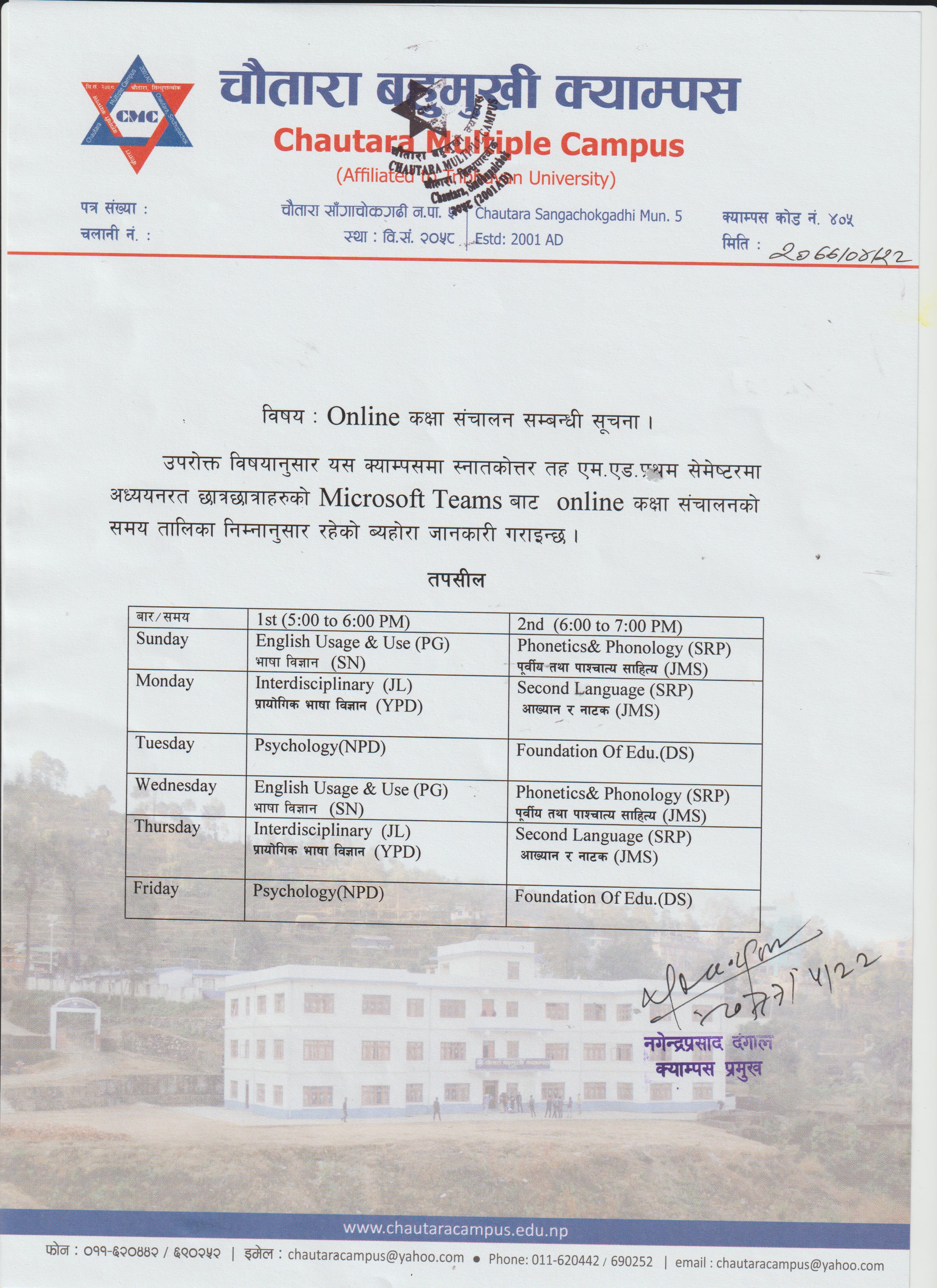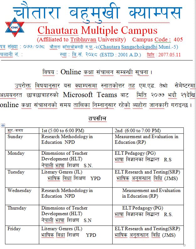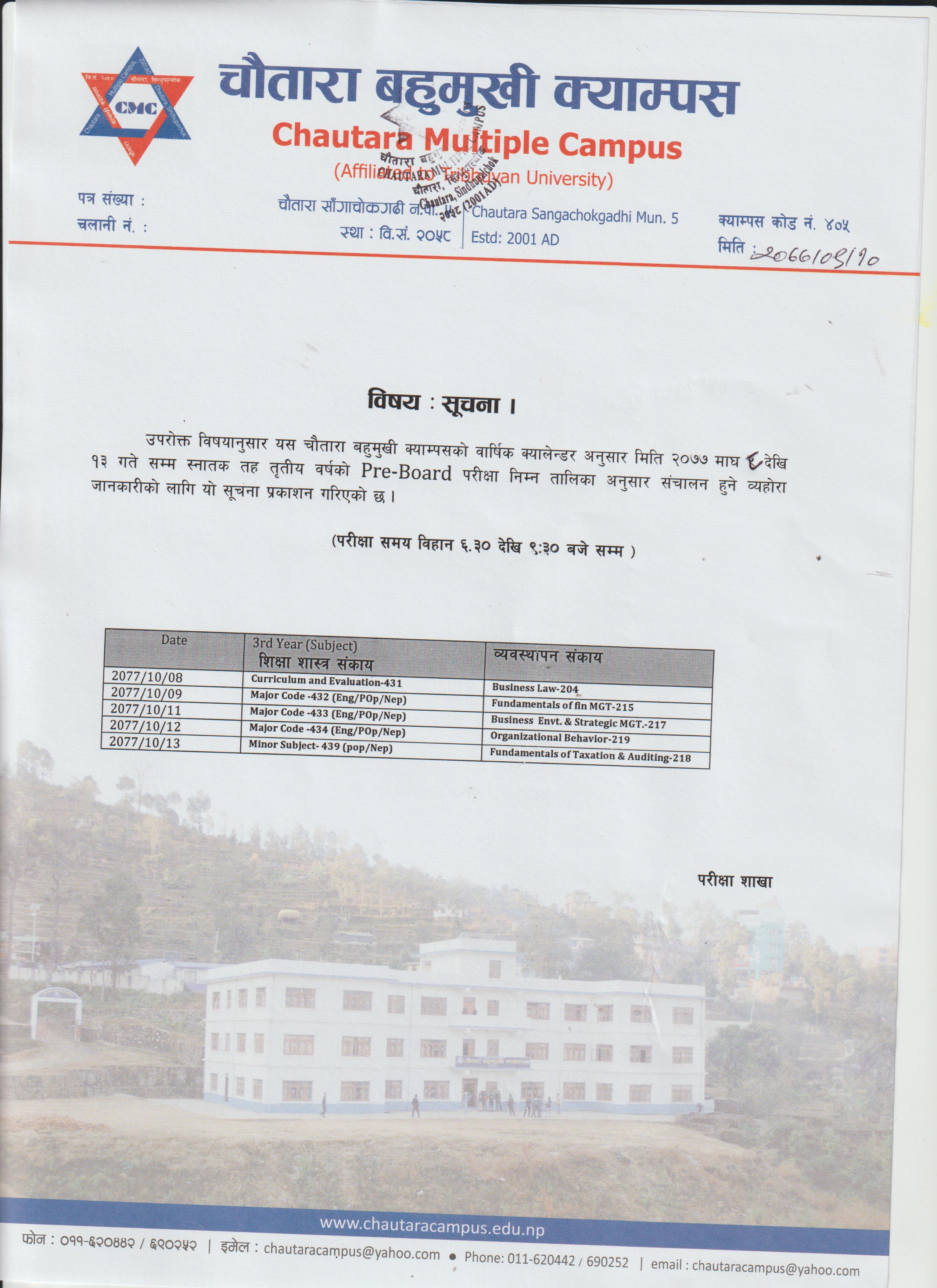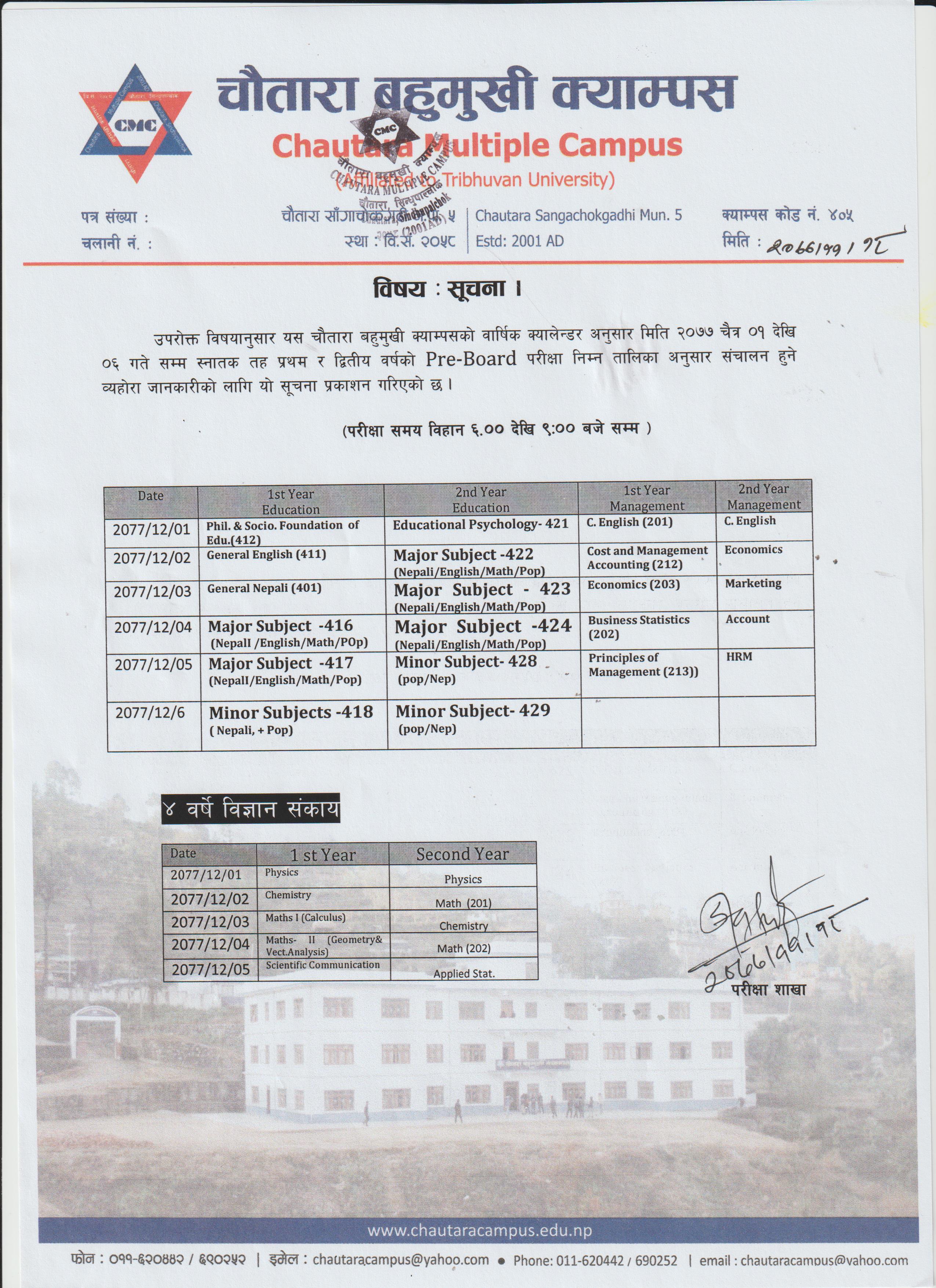 | Exam Schedule: 4/3 Years B.Sc. , B.B.S., B.Ed. & B.A. 2nd Year-2077 |