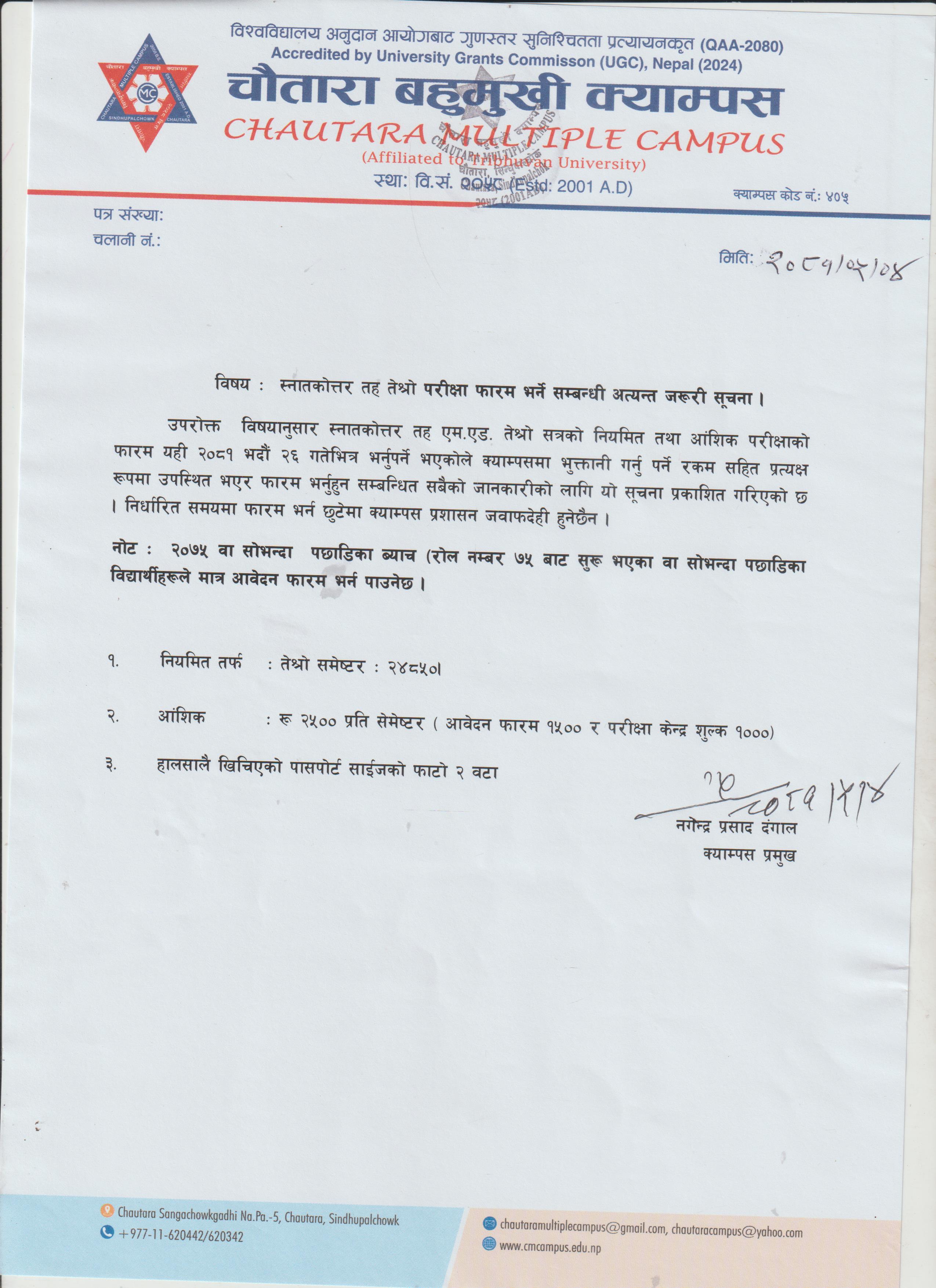 | Notice regarding filling up the exam form for M.Ed. 3rd Semester 2081 |