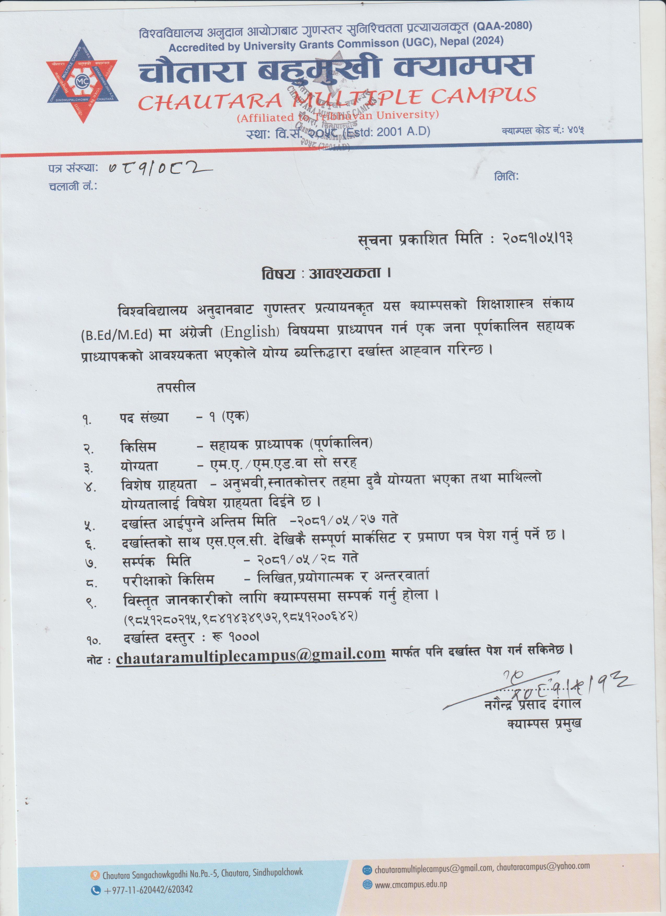 | उप–प्राध्यापक आवश्यकता सम्बन्धी सूचना । |