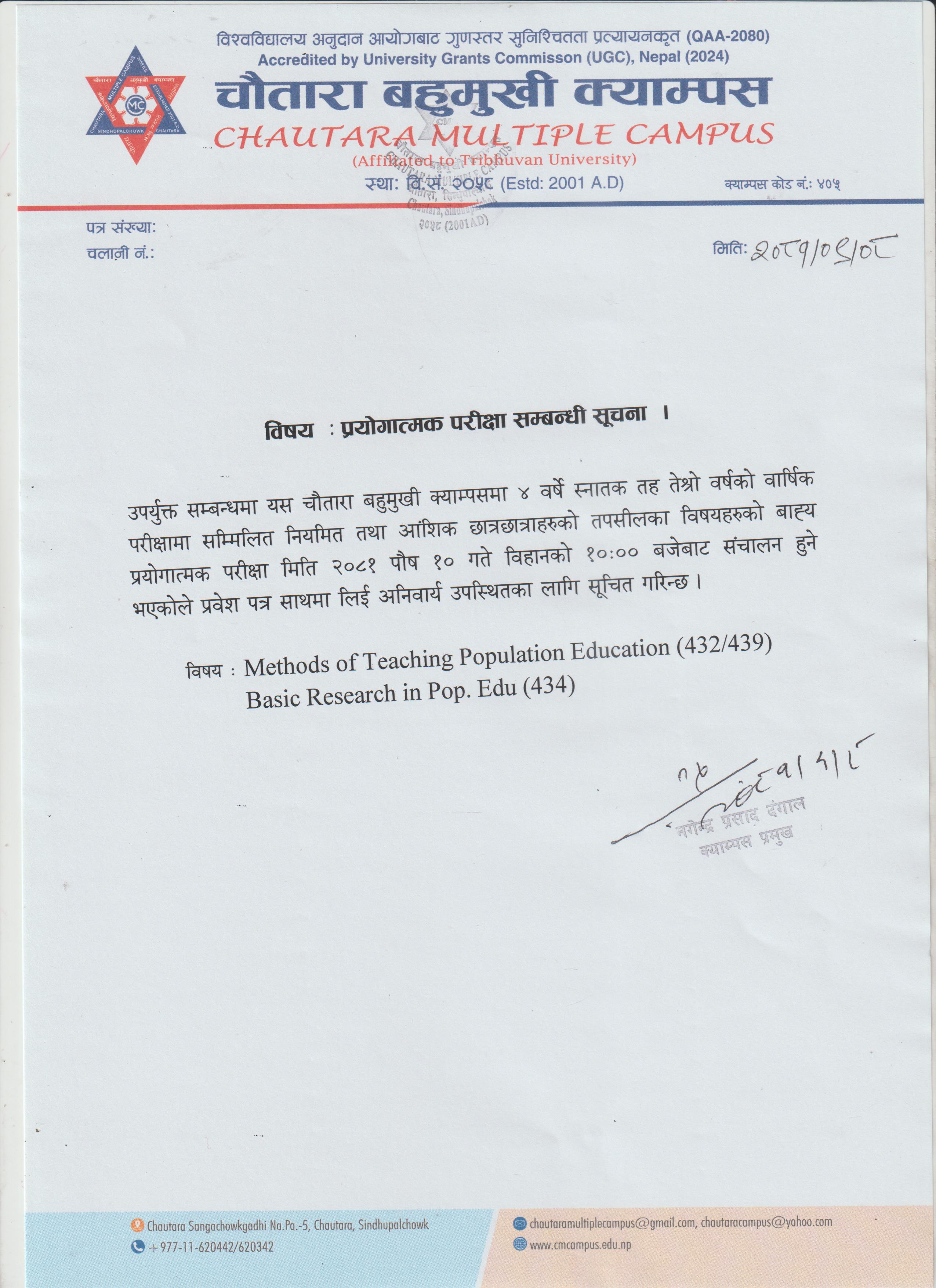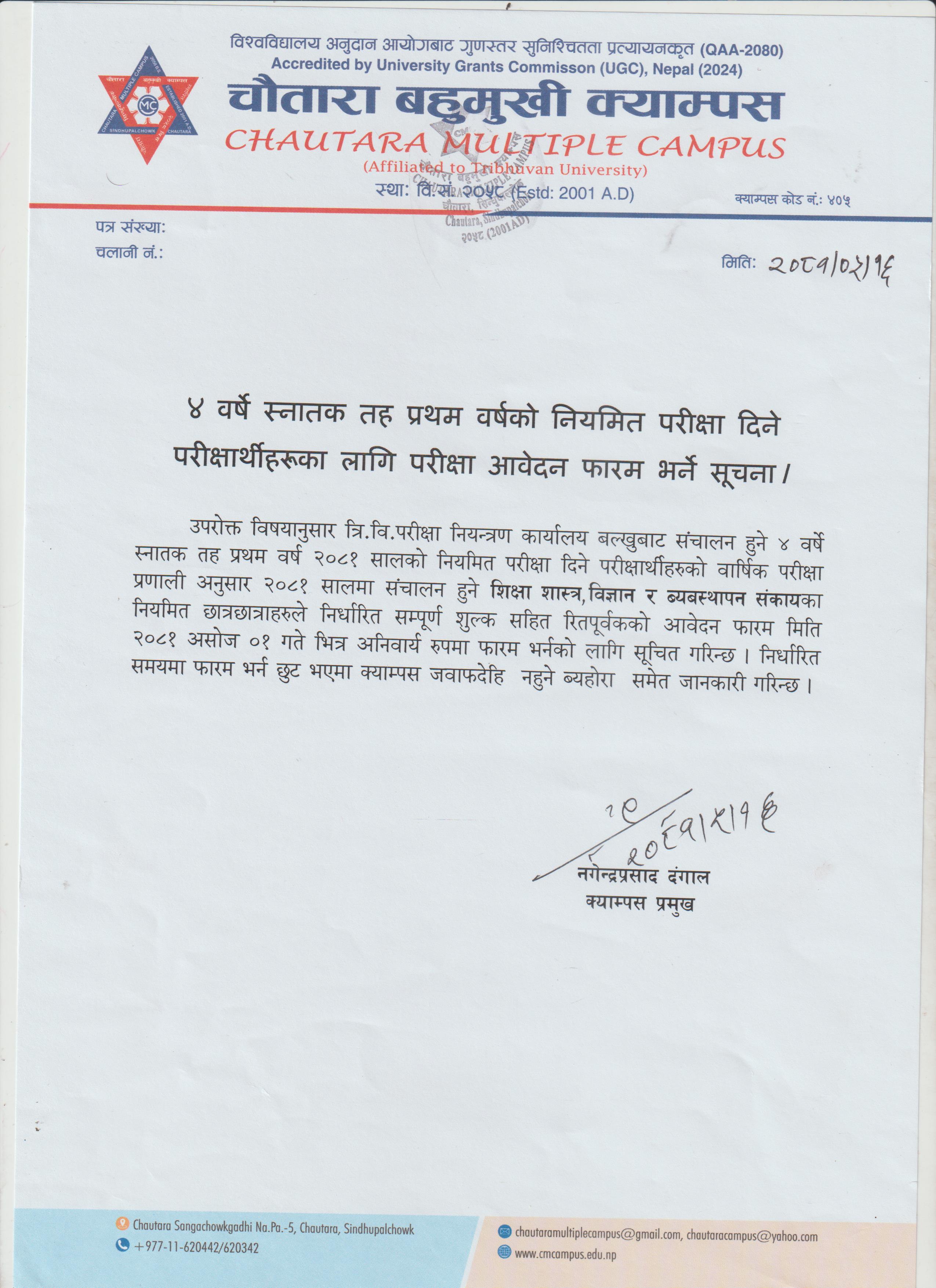 | ४ वर्षे स्नातक तह दोश्रो बर्षको नियमित परीक्षा दिने परीक्षार्थीहरूका लागि |