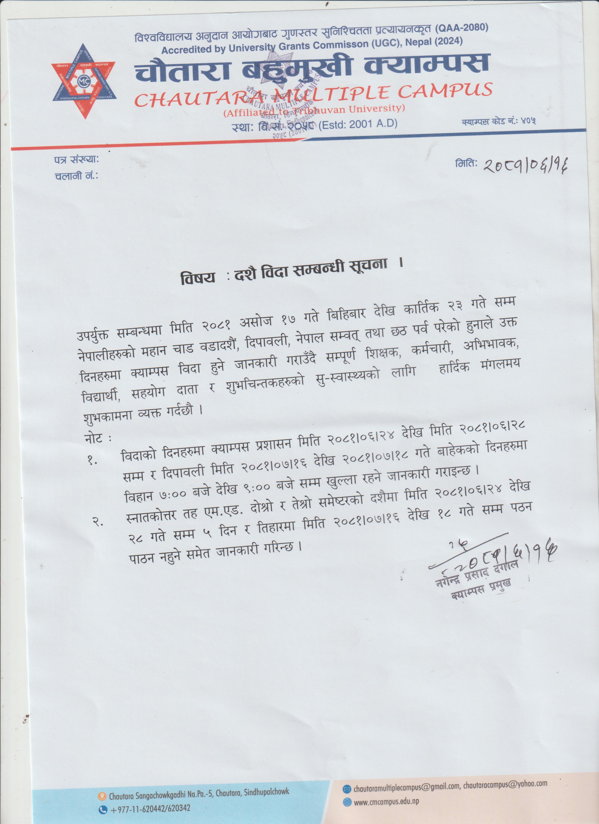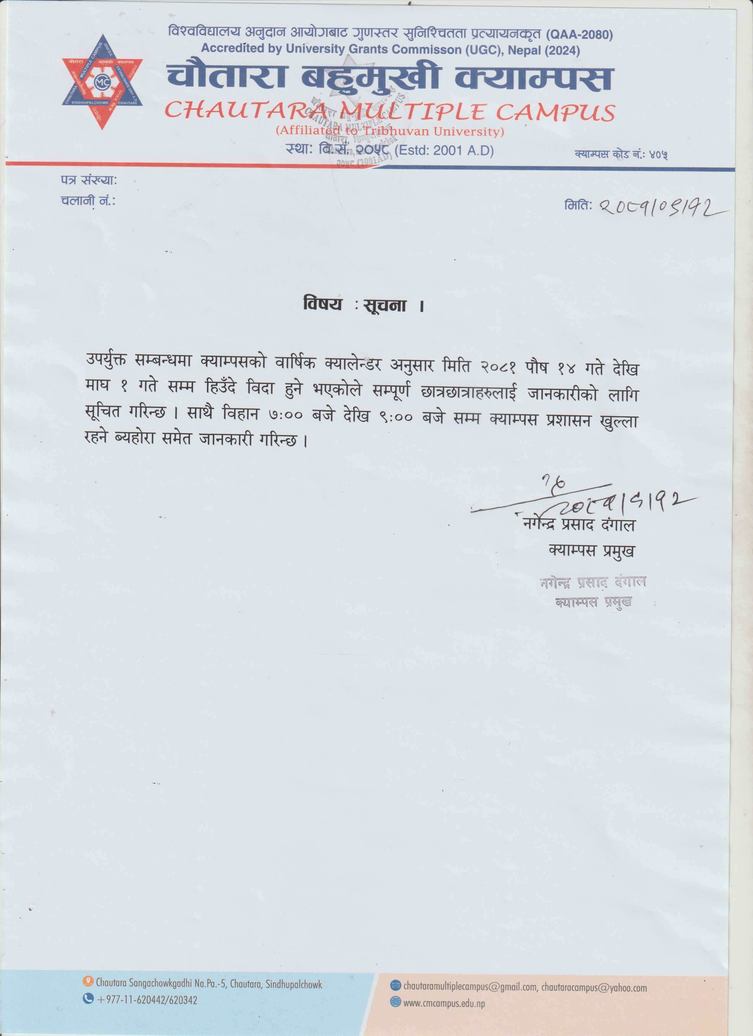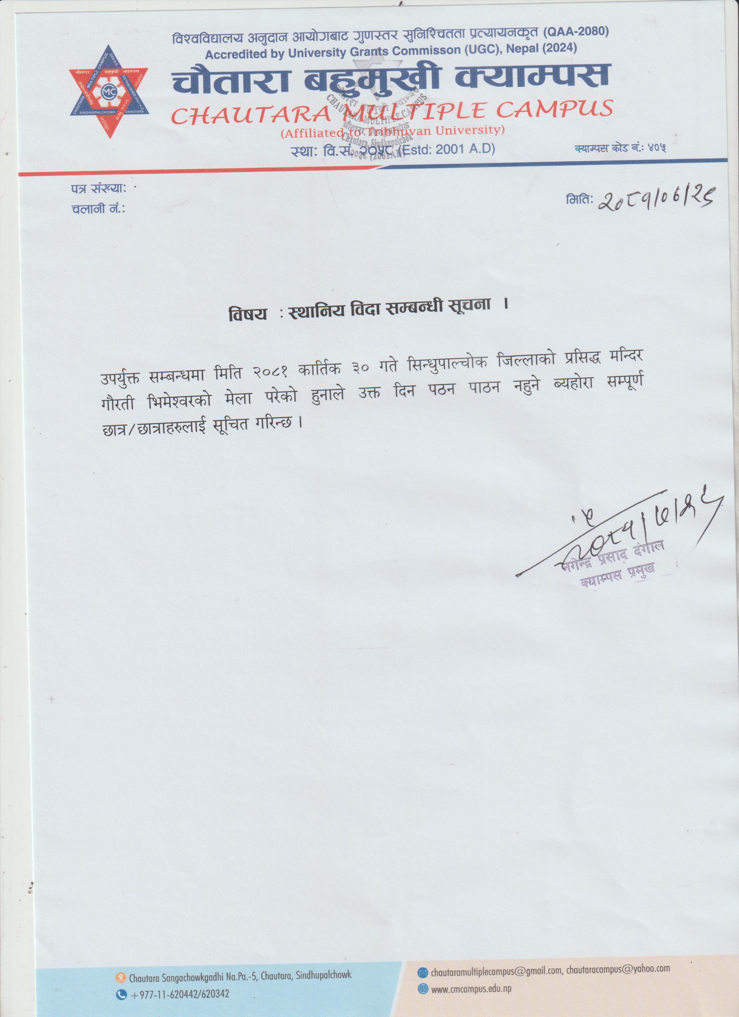 | स्थानिय विदा सम्बन्धी सूचना । |