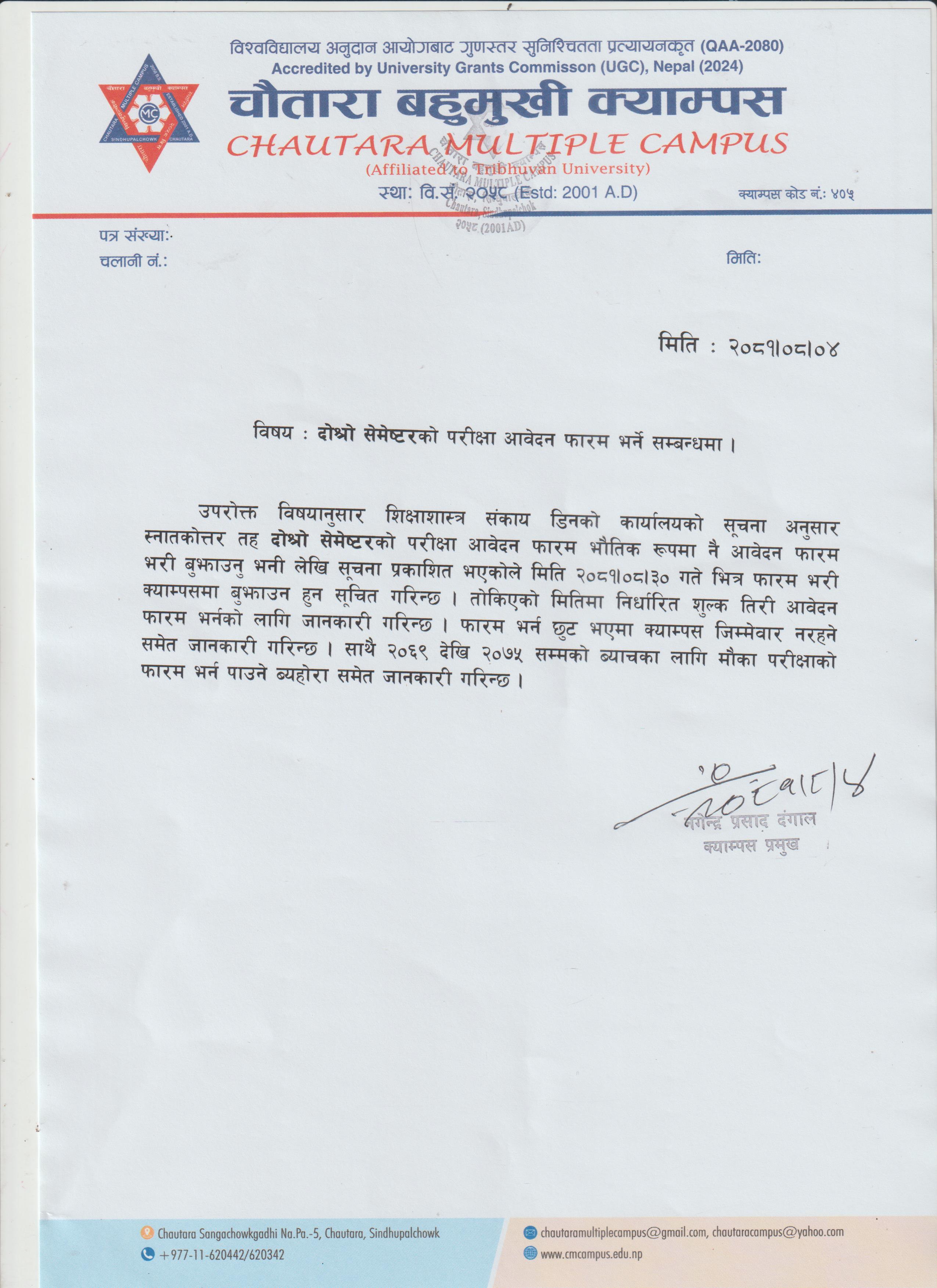| दोश्रो सेमेष्टरको परीक्षा आवेदन फारम भर्ने सम्बन्धमा । |