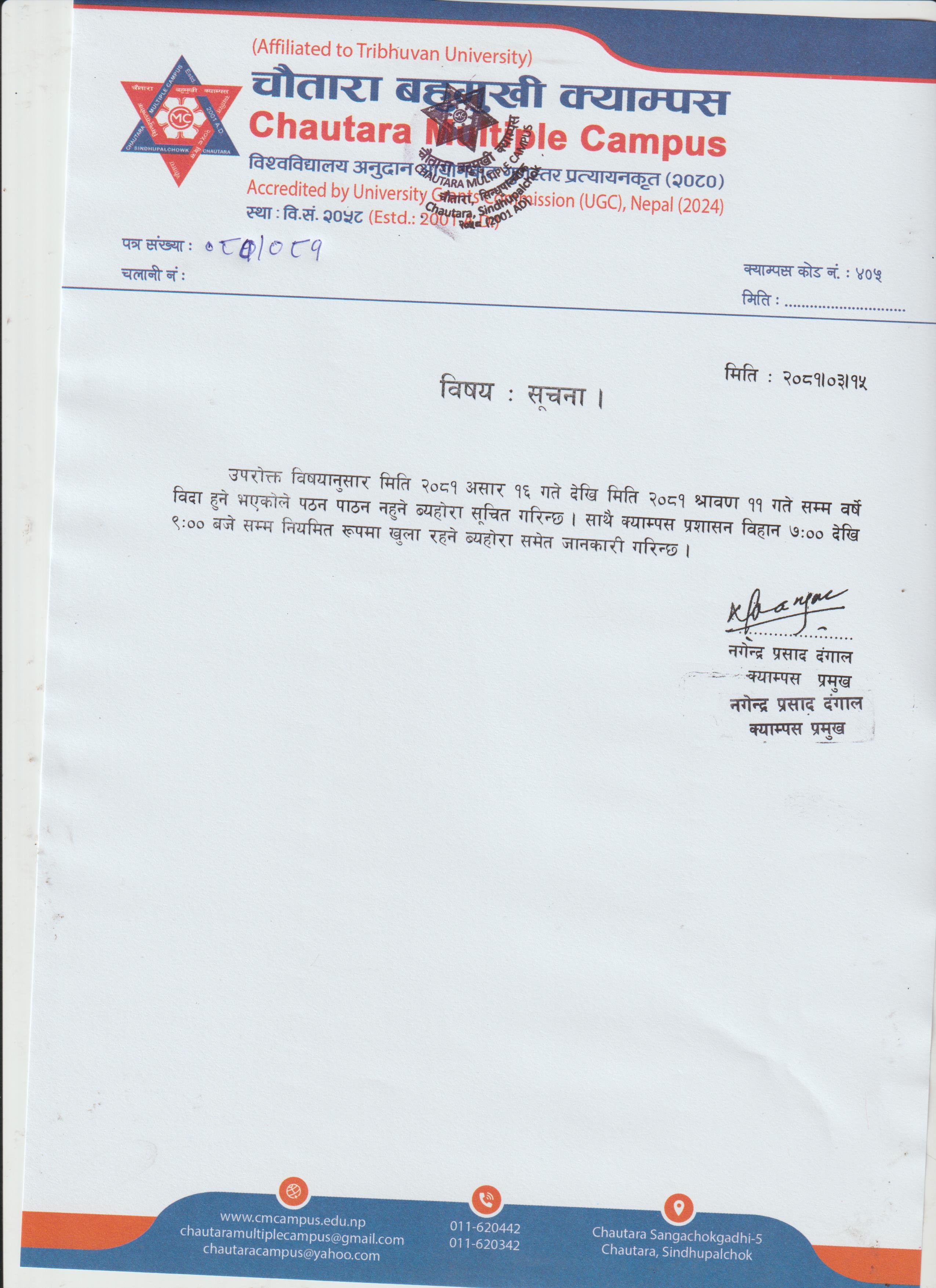 | वर्षे विदाको सूचना । | असार १७, २०८१ आइतबार | Download / View |