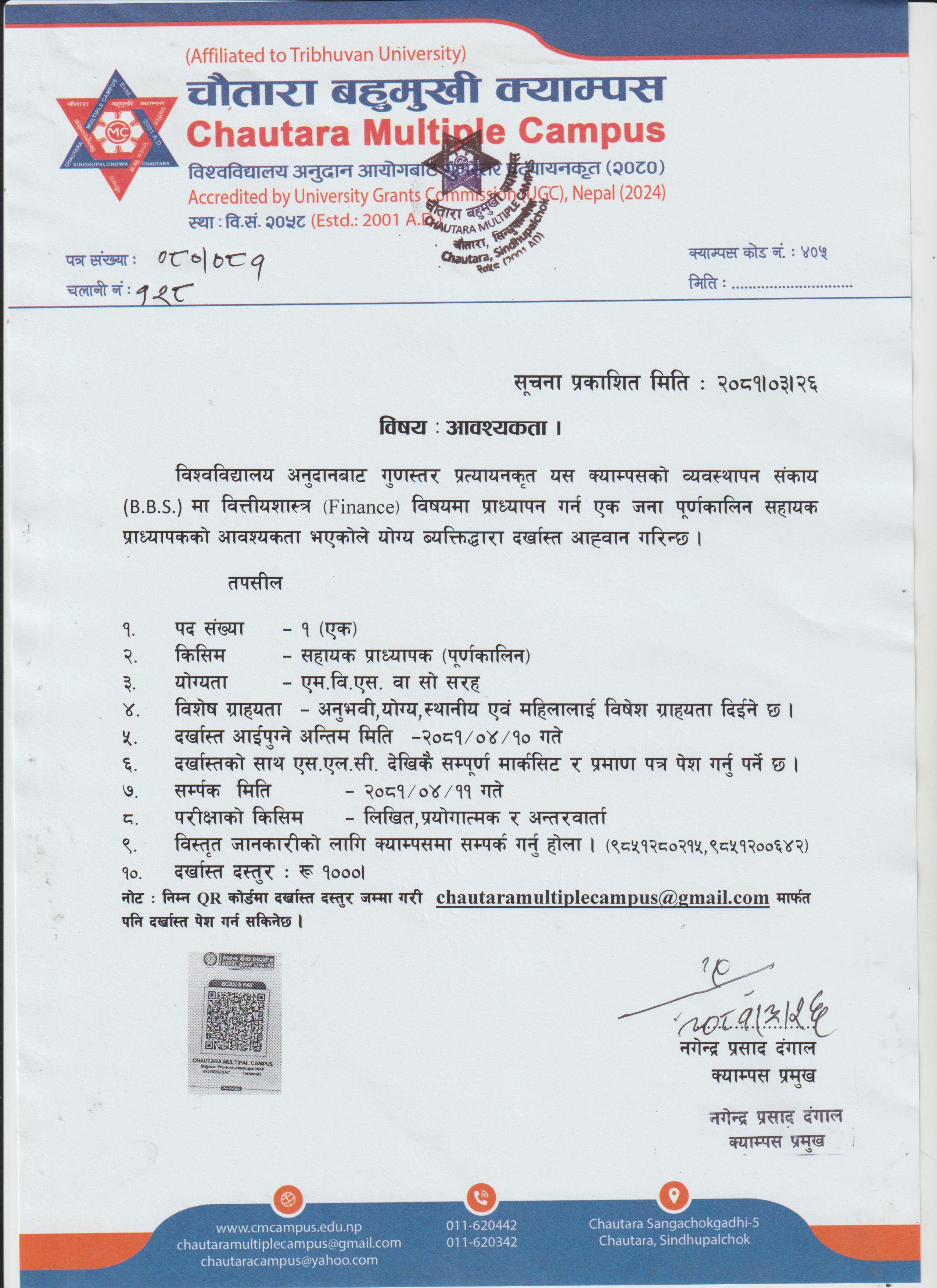 | शिक्षक आवश्यकता सम्बन्धी सूचना । | असार २७, २०८१ बुधवार | Download / View |