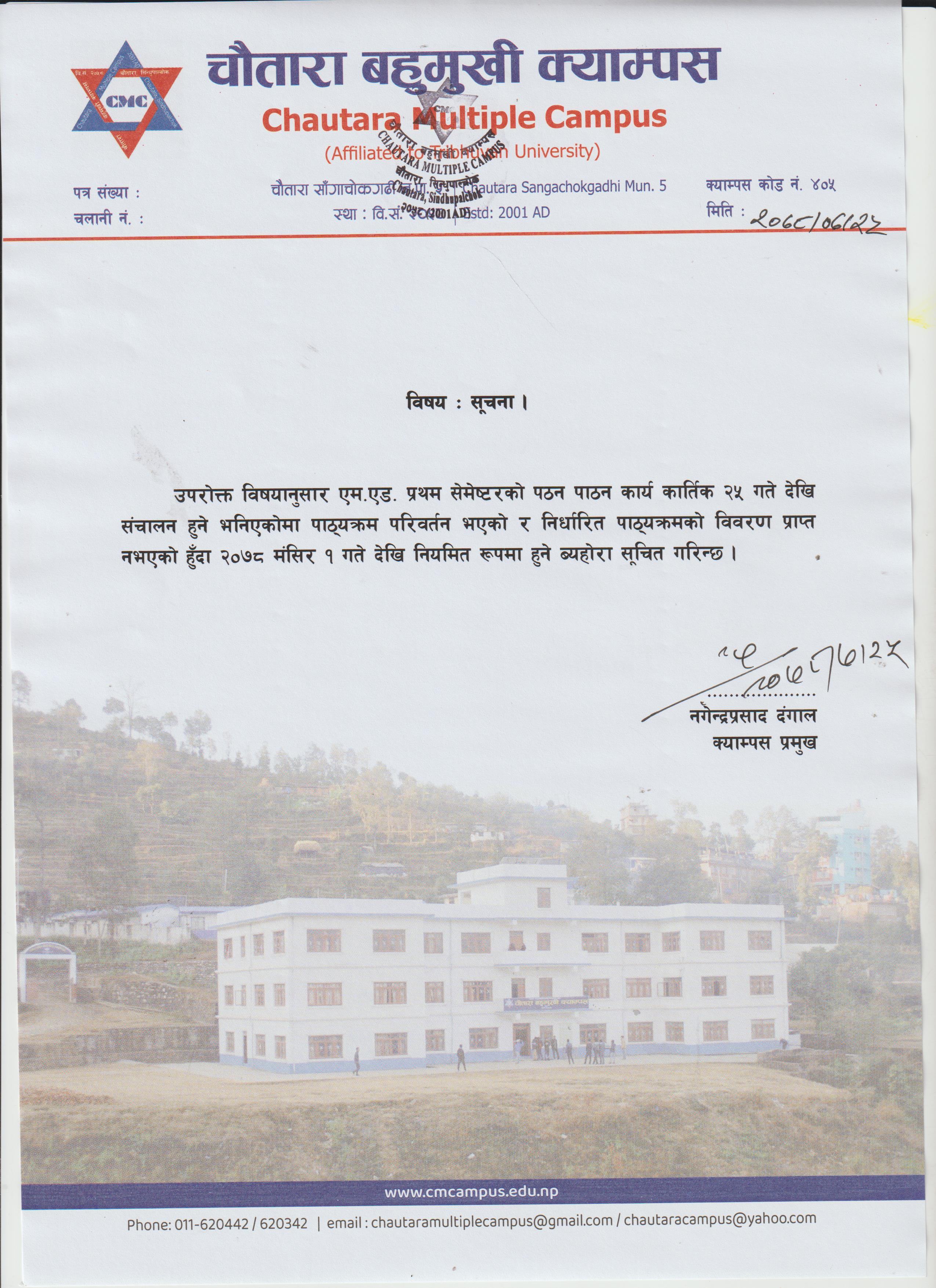 | स्नातक तह द्धितीय वर्षको कक्षा संचालन सम्बन्धी सूचना । | जेठ १, २०८० सोमवार | Download / View |