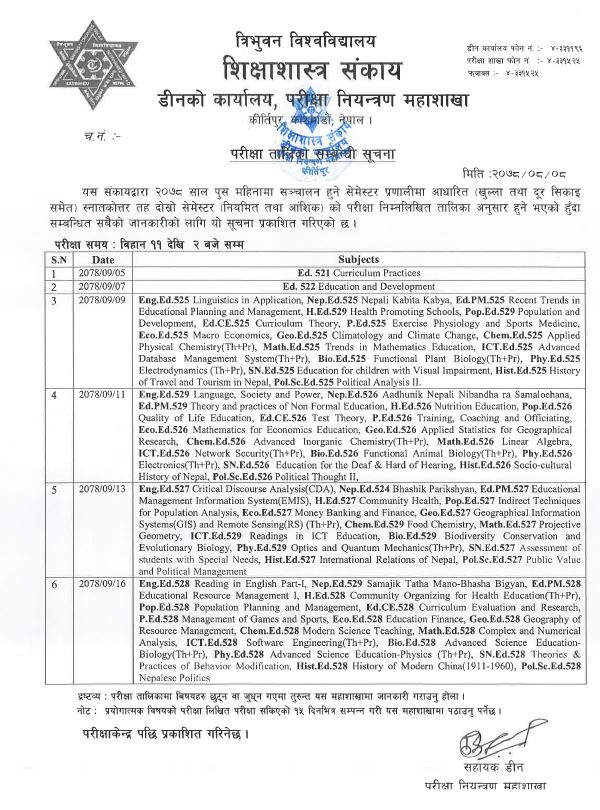 | M.Ed Second Semester Exam Routine | मंसिर ९, २०७८ बिहीबार | Download / View |